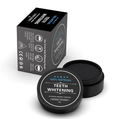 Nuestro Polvo Negro Blanqueador a base de Carbón Activado es la solución perfecta para eliminar manchas superficiales causadas por café, té, vino o tabaco, devolviéndole a tus dientes un aspecto más limpio y brillante.